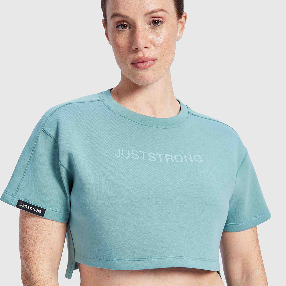 Our Teal Oversized Athletic Cropped Tonal T-Shirt is designed for maximum comfort and performance. Crafted from a super breathable fabric, this T-shirt features a JustStrong detail badge on the arm and a tonal print to the center chest for a minimalistic, quality design. Perfect for any sort of workout, this T-shirt is sure to keep you feeling luxurious and looking stylish.