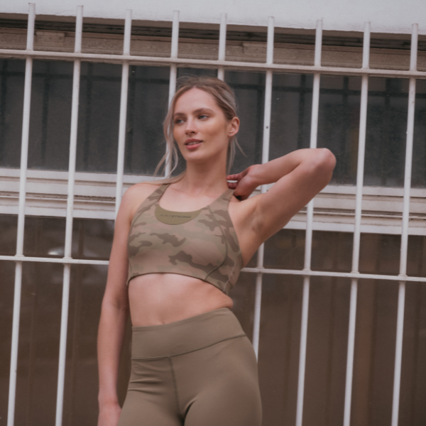Vertex Camo Multi Strap Sports Bra - Military Green